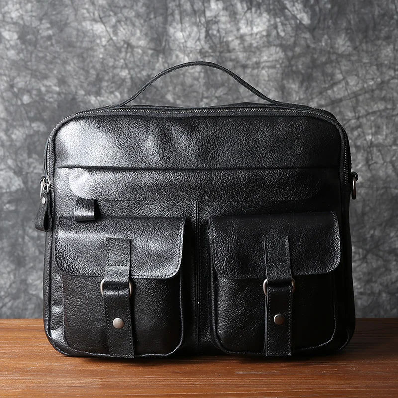Retro Men's Briefcase Leather Laptop Bag Top Layer Cowhide Casual Handbag 14 Inch Business Shoulder Bag Messenger Bag