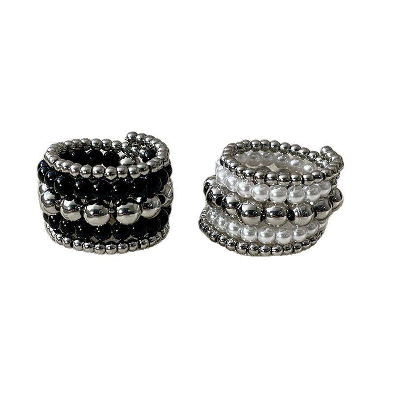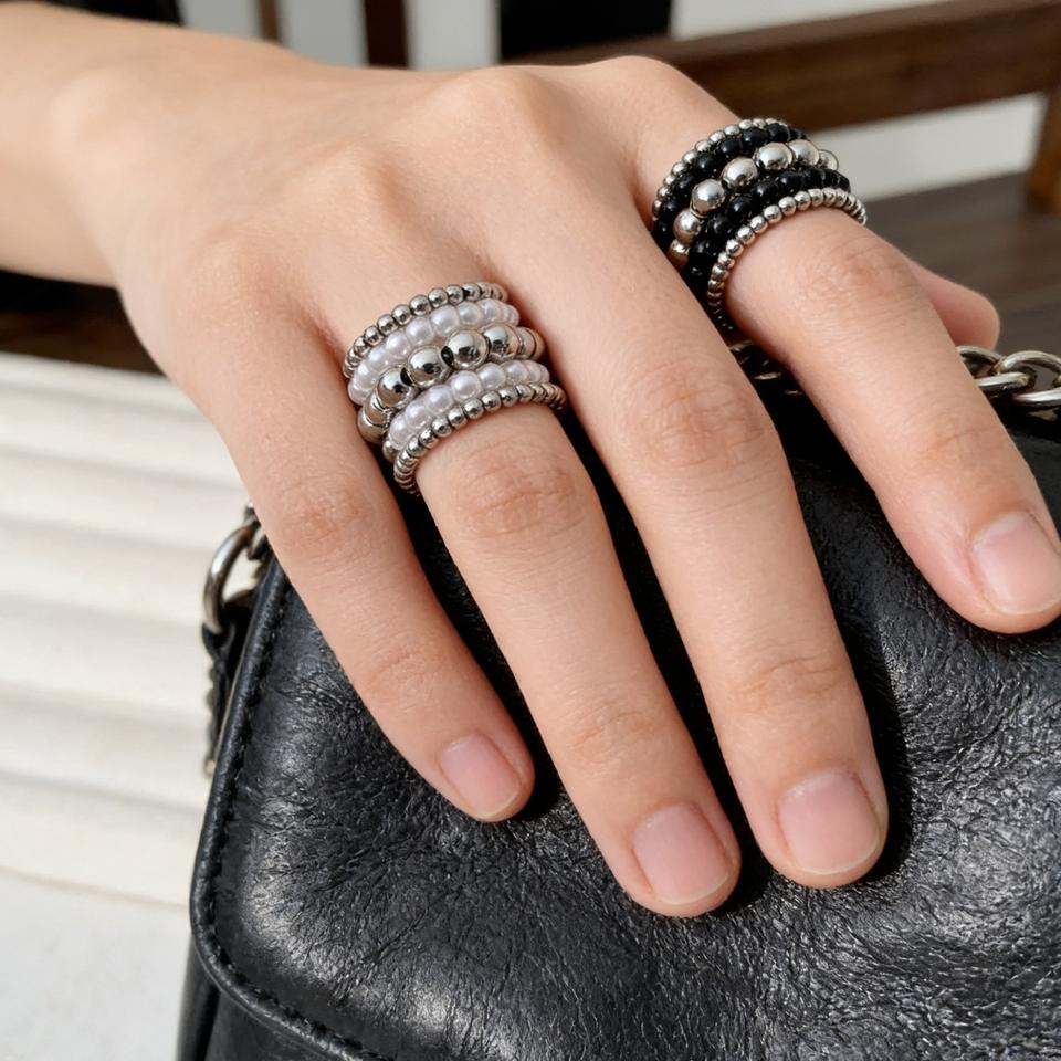 Retro Multi Layer Ball Natural Round Pearl Cocktail Ring for Party Unisex Fashion Jewelry