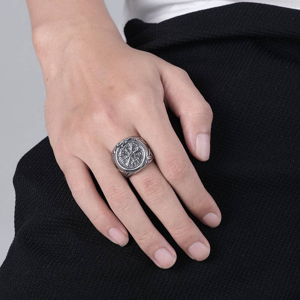 Retro Nordic Style Viking Rune Titanium Steel Ring For Men Large Size Unique Celtic Jewelry