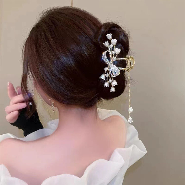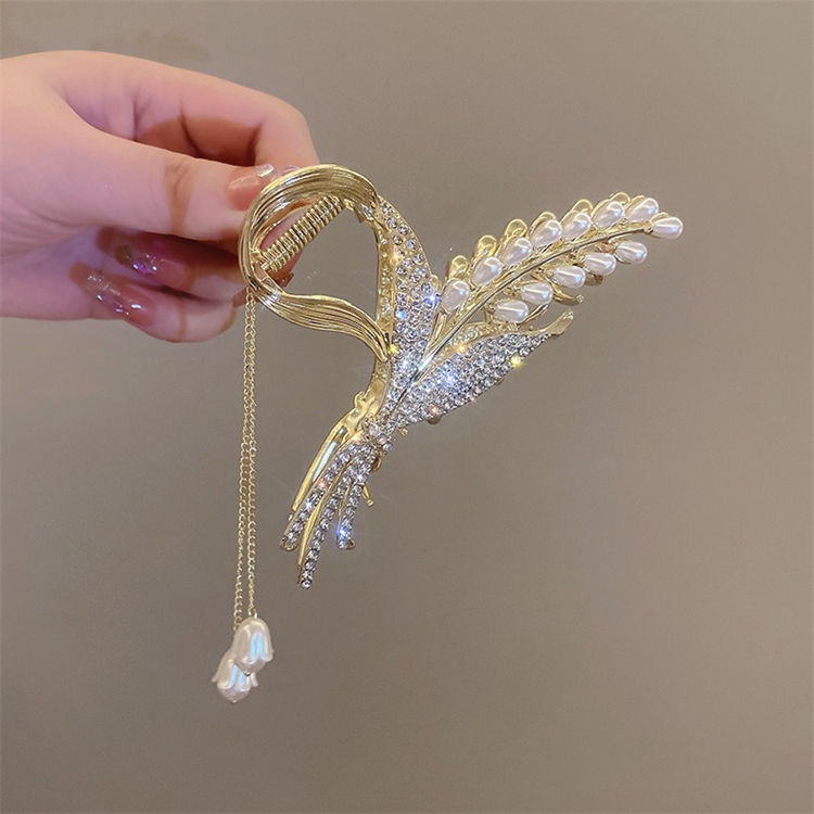 Retro Pearl Tassel Butterfly Shark Clip Head Ornament Hair Claw Catch Clips Flores Convallariae Back Head Hairpin
