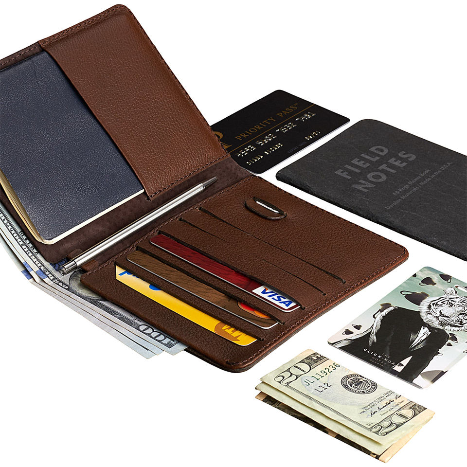Retro Recycled Leather Travel Wallet Hot Stamping Logo Top Rated Engraved Dual Passport Holder Cover With Name