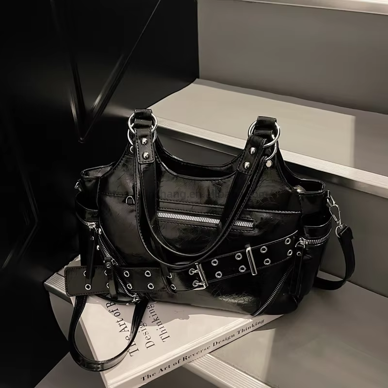 Retro Rivet Motorcycle Bag Large-Capacity Textured Shoulder Bag High-End Versatile Crossbody Bag Underarm Tote Bag Tanjing