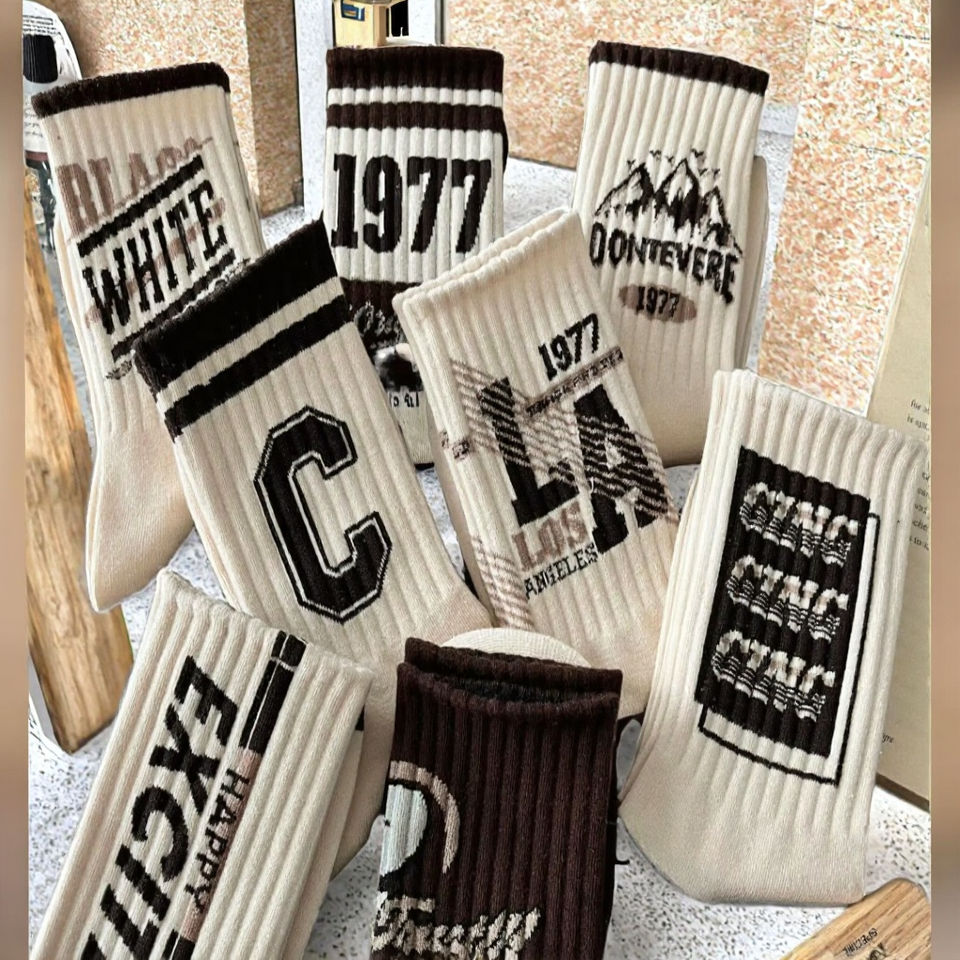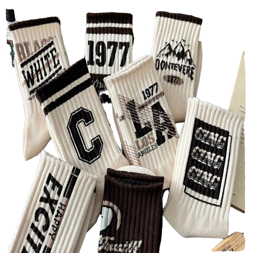 Retro Sporty Men's Crew Socks Casual Breathable Anti-slip with Letter Pattern Logo on Cuff High for Autumn Winter Spring Men