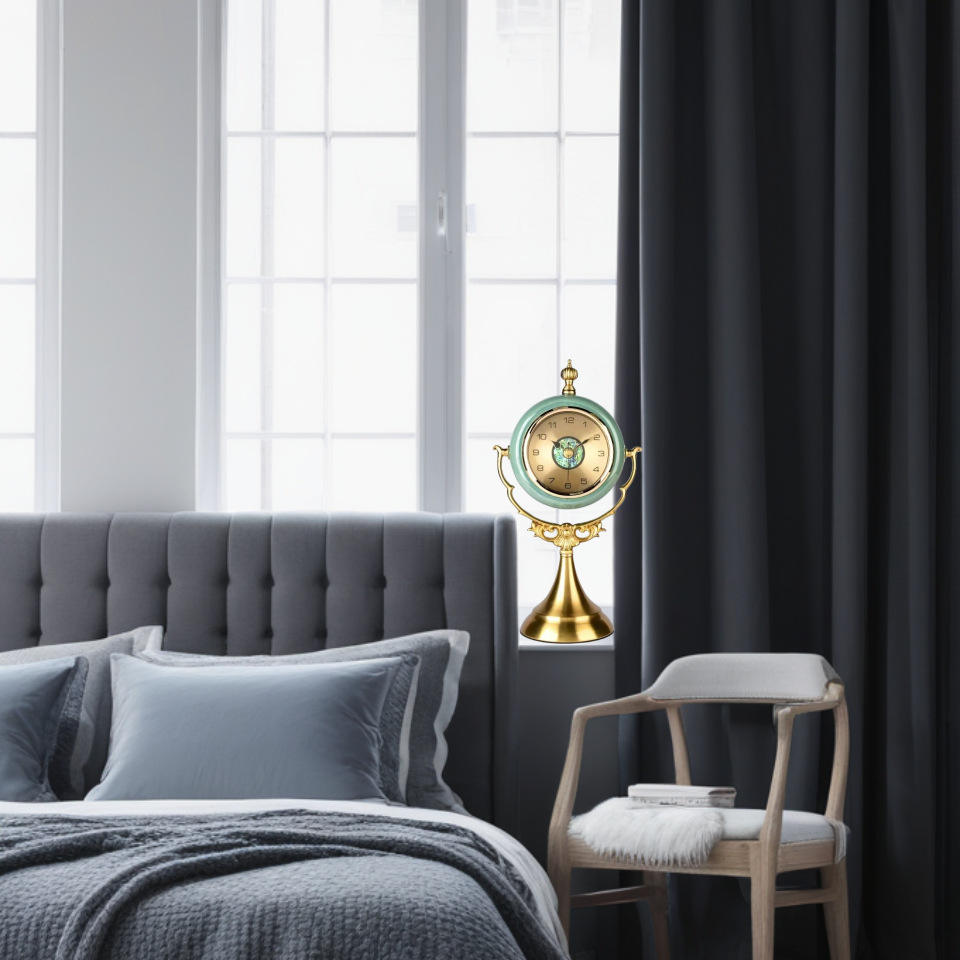 Retro Style Ceramic Table Clock Circular Gold Base Decorative Desktop Clock Home Ornament