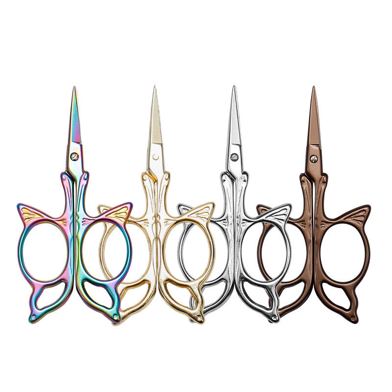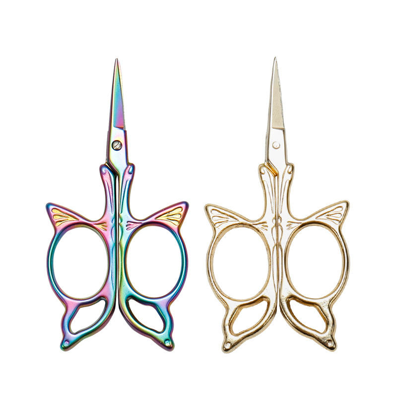 Retro Style Colored Titanium Embroidery Scissors Straight Head Stainless Steel Home Craft Supplies