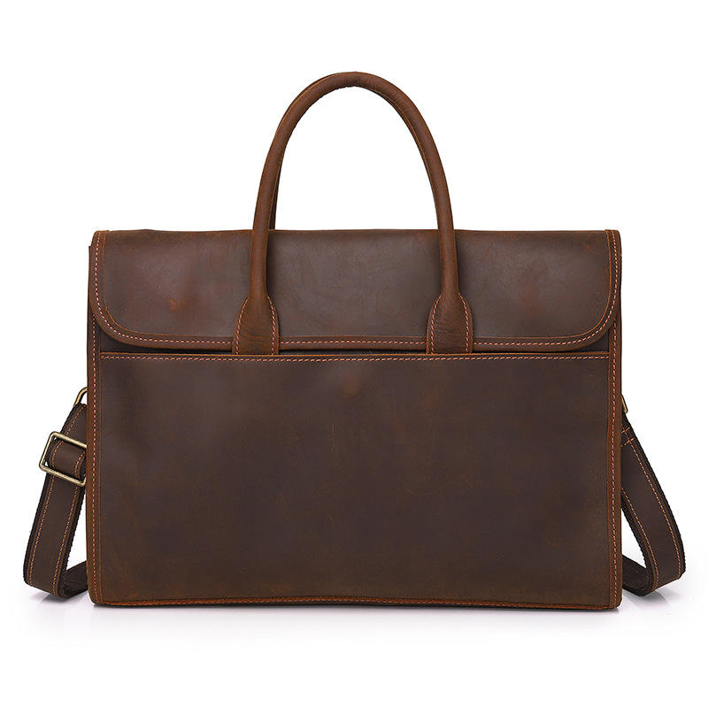 Retro Style Cowhide Briefcase Large Capacity Genuine Leather Business Bag For Men Dark Brown Coffee Color Solid Pattern
