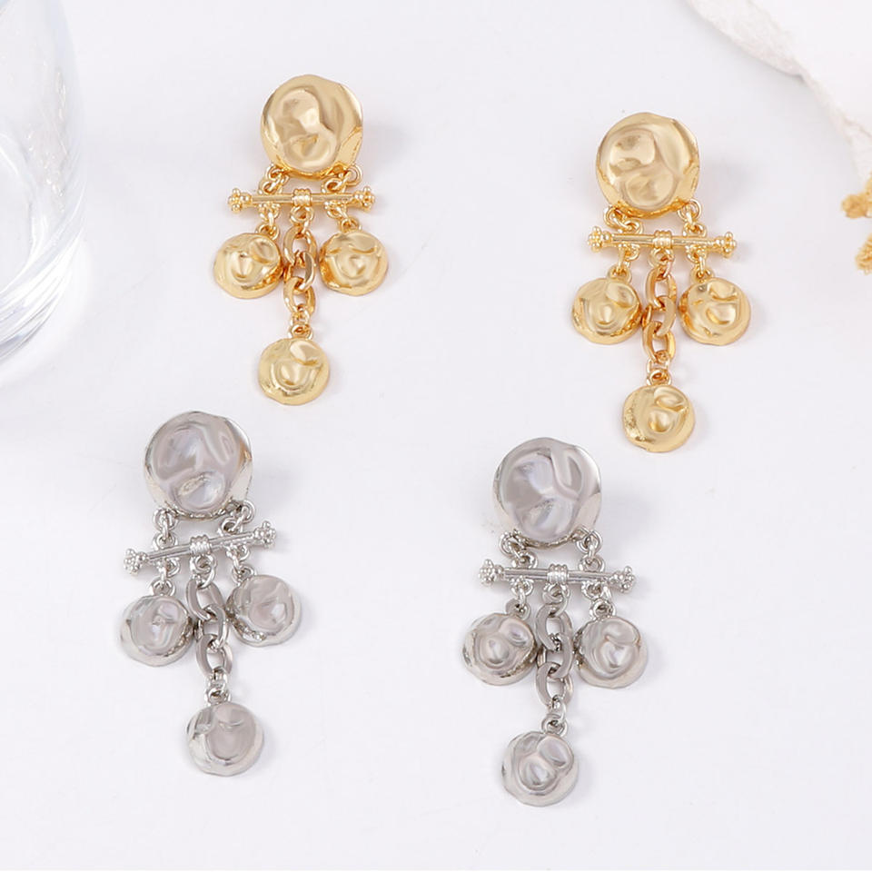 Retro Trend Cold Style Alloy Geometric Concave Convex Hammer Texture Round Splicing Tassel Earrings