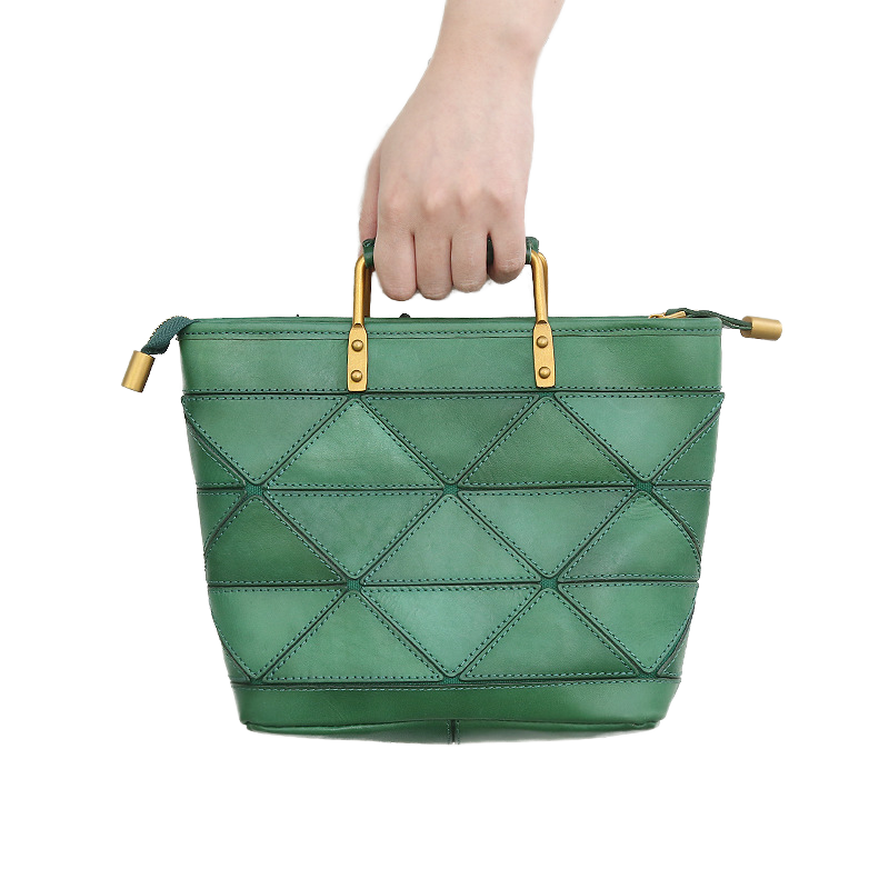 Retro Vintage Geometric Stitching Handbag Cross Body Bag Ladies Vegetable Tanned Leather Messenger Bag for Women