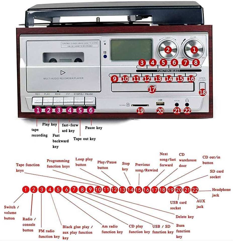 Retro Wood Multi Function Turntable Reader 8 in 1 Cassette Player Recorder BT USB SD FM AM CD DVD Record Player Vintage Audio