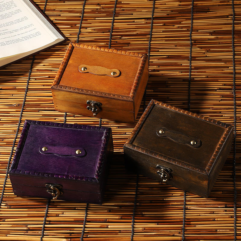 Retro Wooden Storage Box Solid Color Sliding Cover For Home Decor And Photography Props