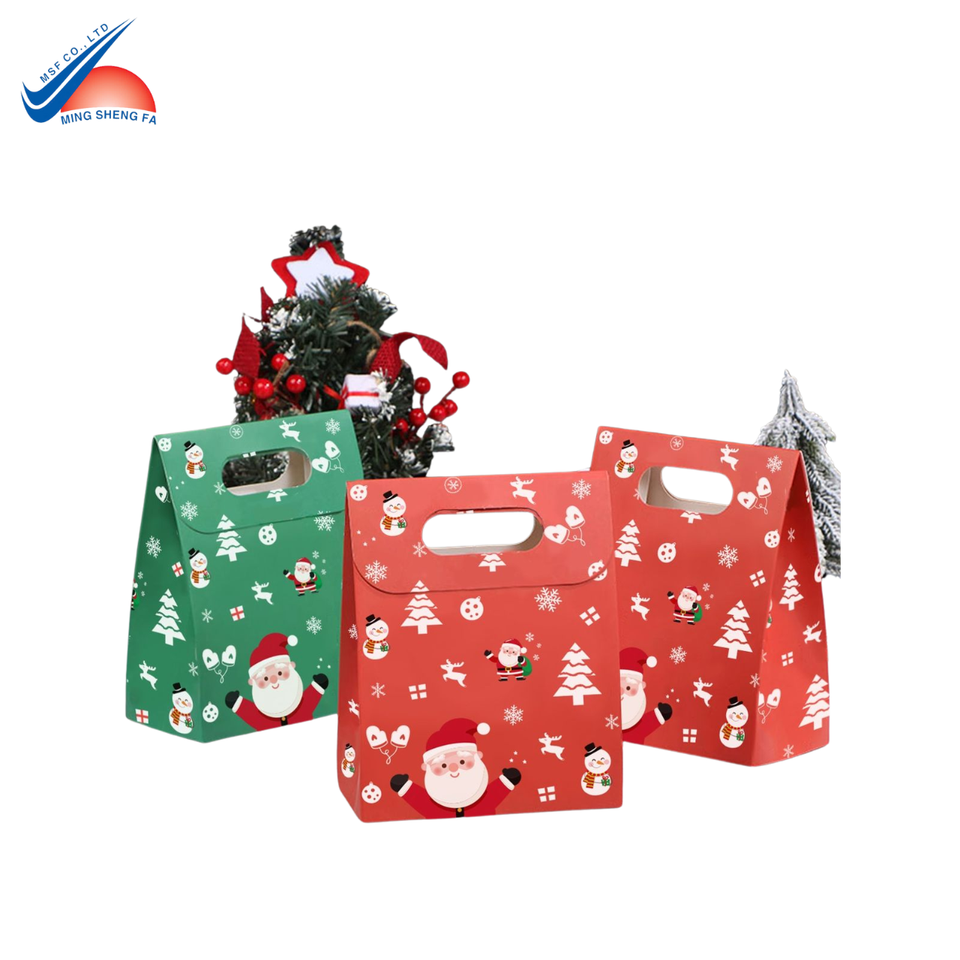 Reusable Christmas Paper Gift Bags with Custom Artwork, Ideal for Seasonal Gift Wrapping and Promotions