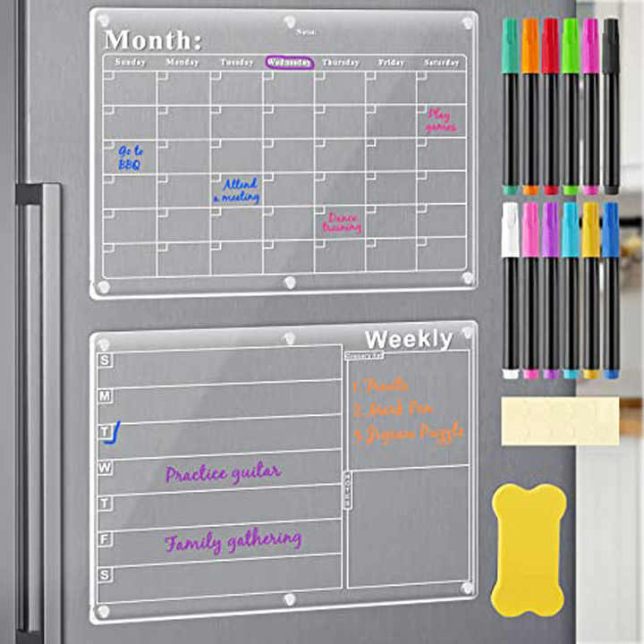 Reusable Clear Acrylic Dry Erase Board Calendar Custom Clear Magnetic Message Board for Fridge