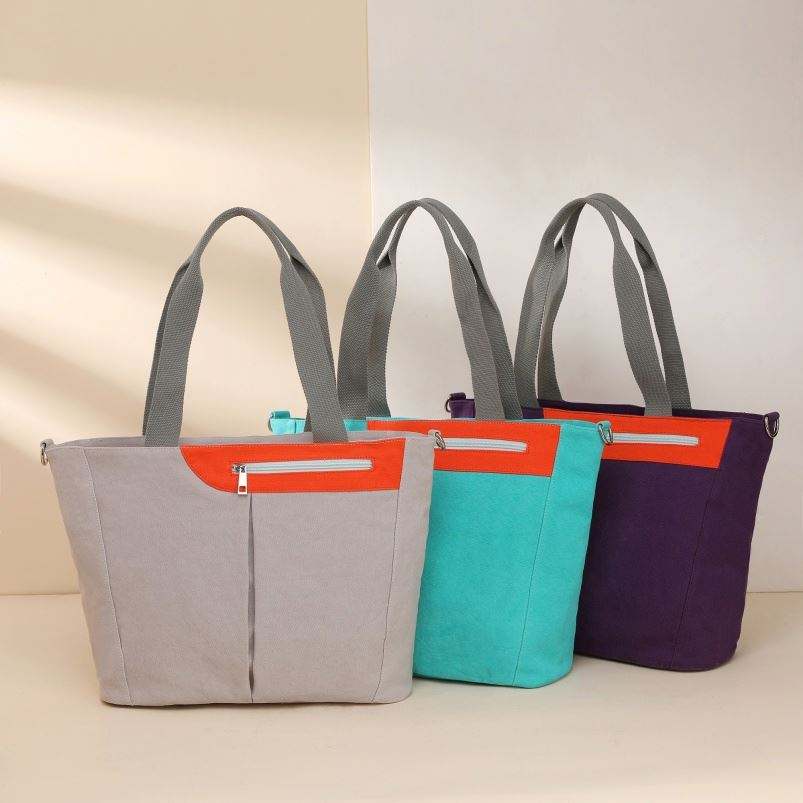 Reusable Cloth Canvas Cotton Tote Shopping Bag Custom Logo Beach Tote Bag for Women With Pockets and Zipper