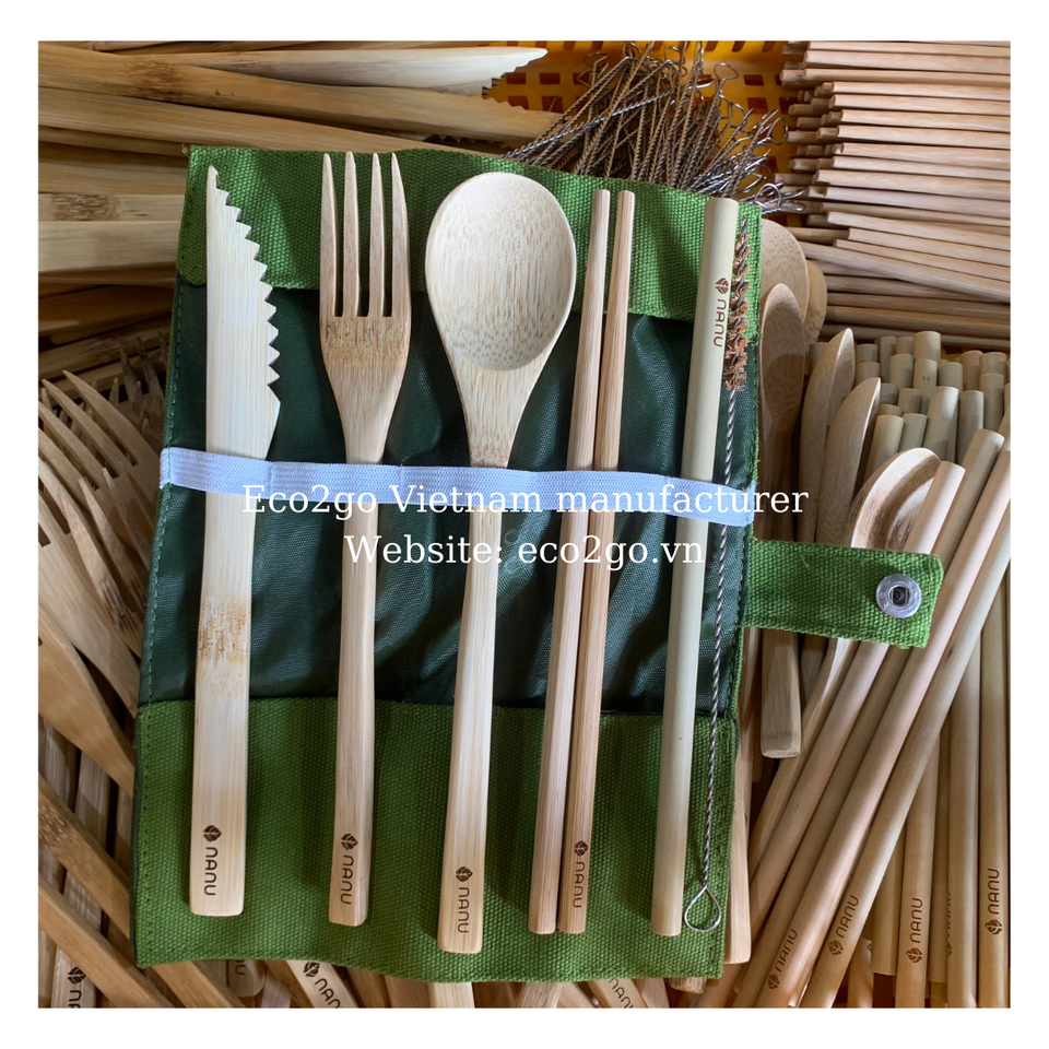 Reusable Handmade Bamboo Cutlery Set/ Bamboo Fork Spoon Knife Cutlery Set With Free Laser Logo in Vietnam