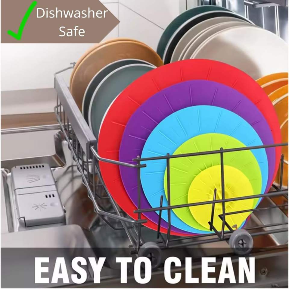 Reusable Heat Resistant Food Suction Lids 5-Pieces Silicone Microwave Splatter Cover Fits Bowls Pots Pans