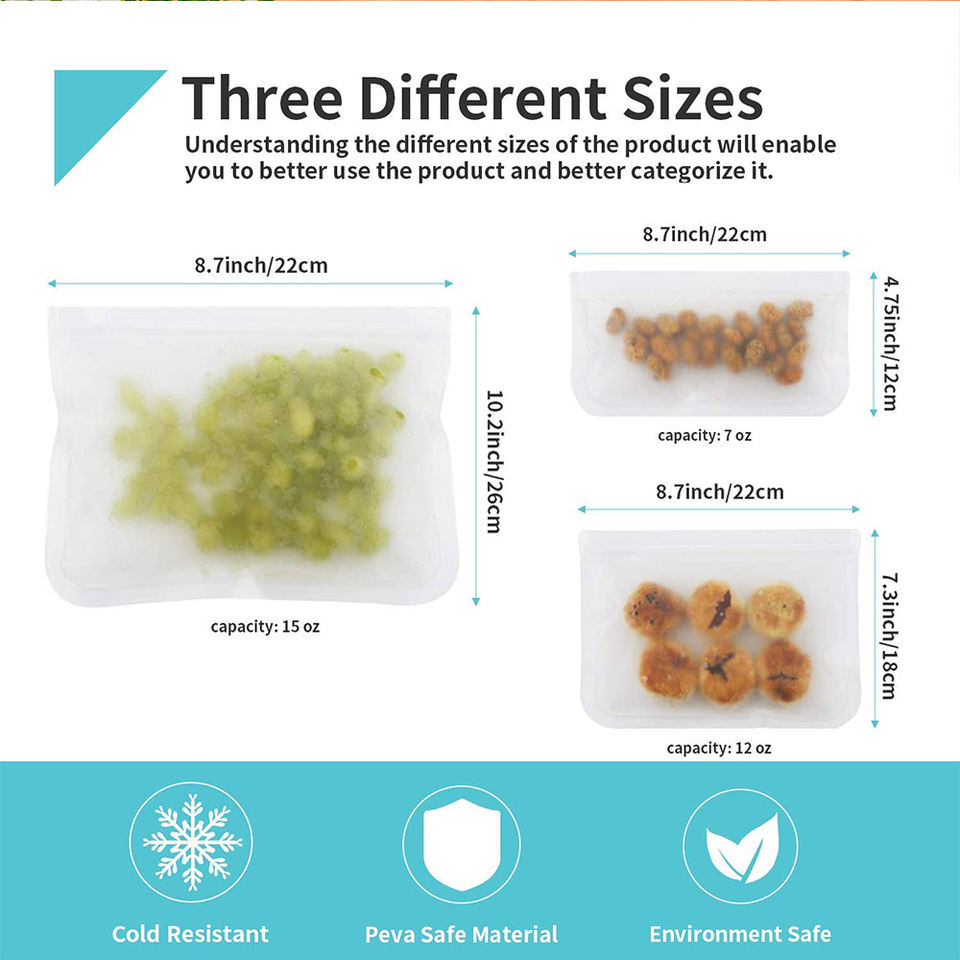 Reusable Leakproof PEVA Storage Bags Ziplock Food Sandwich Storage Bags 10 Pack