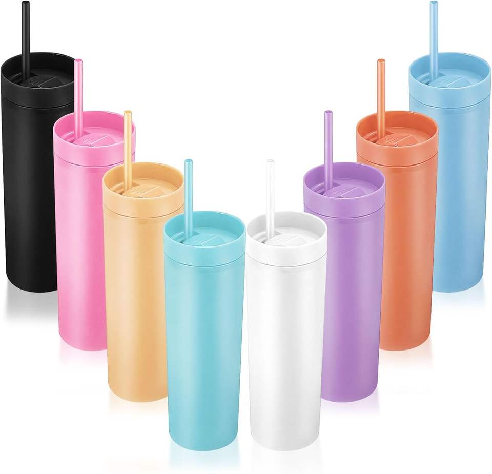 Reusable Matte Acrylic Tumblers with Lids 16oz Double Wall Plastic Skinny Tumblers Cup with Lid and Straw