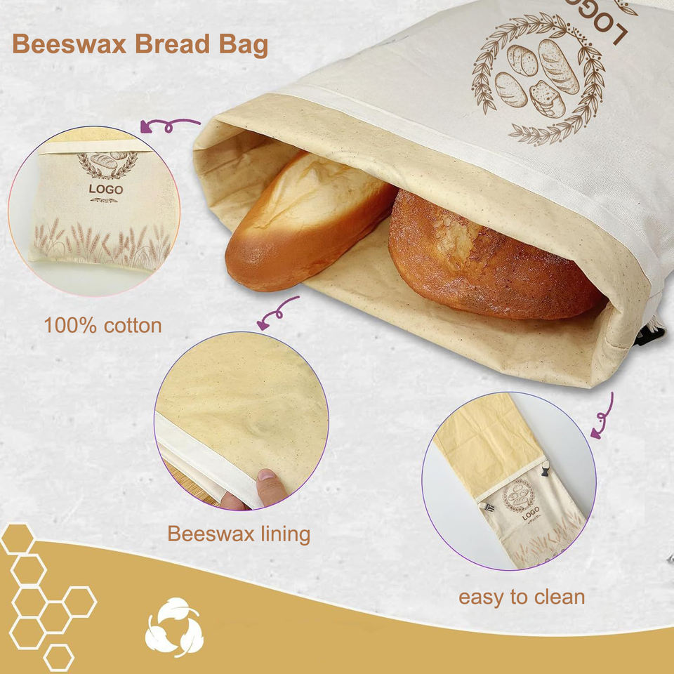 Reusable Organic Beeswax Linen Cotton Sourdough Bag Bread Bags for Homemade Bread with Sealing Zip to Keep Fresh