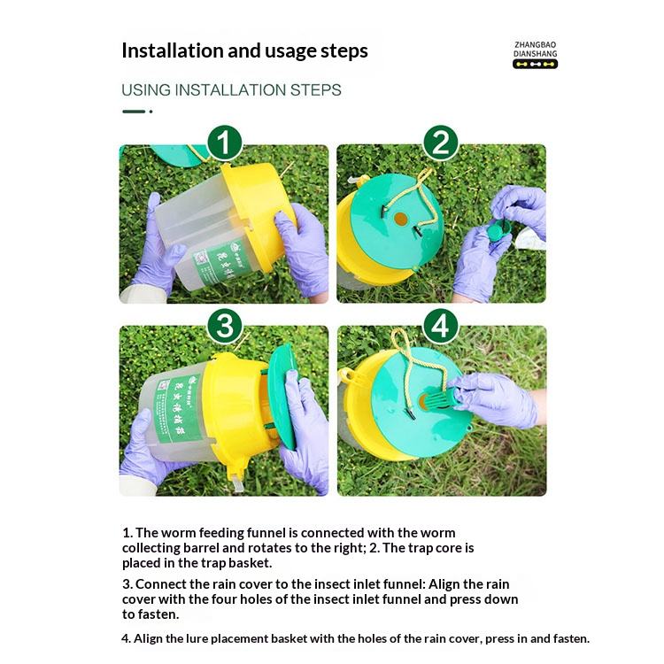 Reusable Solid Plastic Fall Armyworm Moth Trap with Wasp Bucket Catcher UV-resistant 2L Capacity Eco-friendly