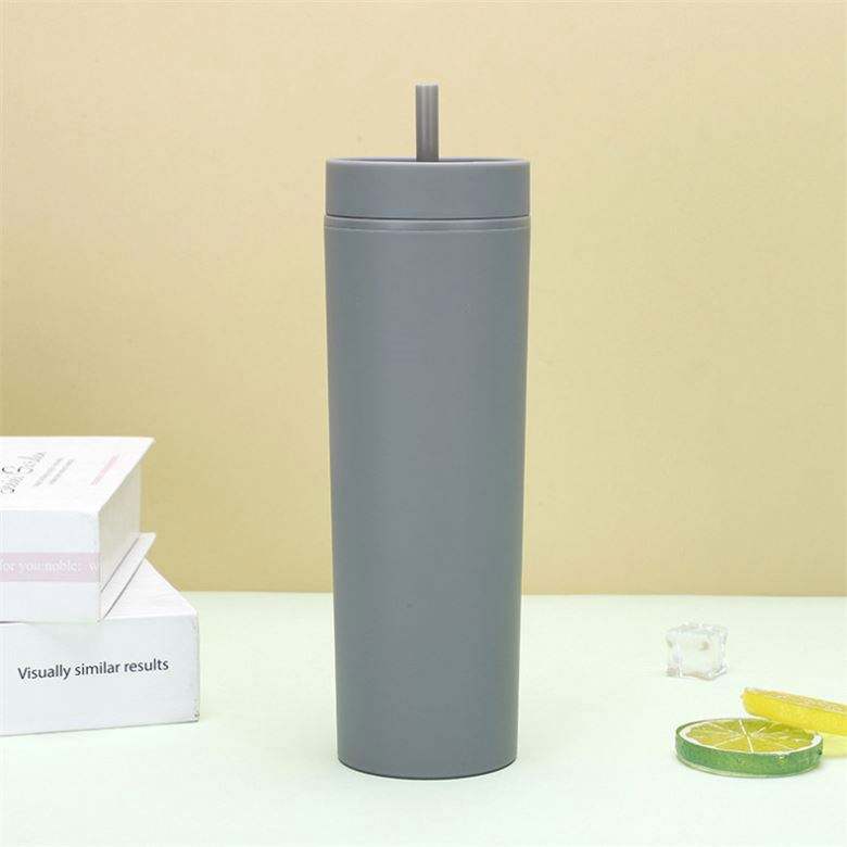 Reusable Polish 16Oz Double Wall Plastic Skinny Tumblers Cups Colorful Acrylic Matte Tea Coffee Mug With Slide Lid and Straw