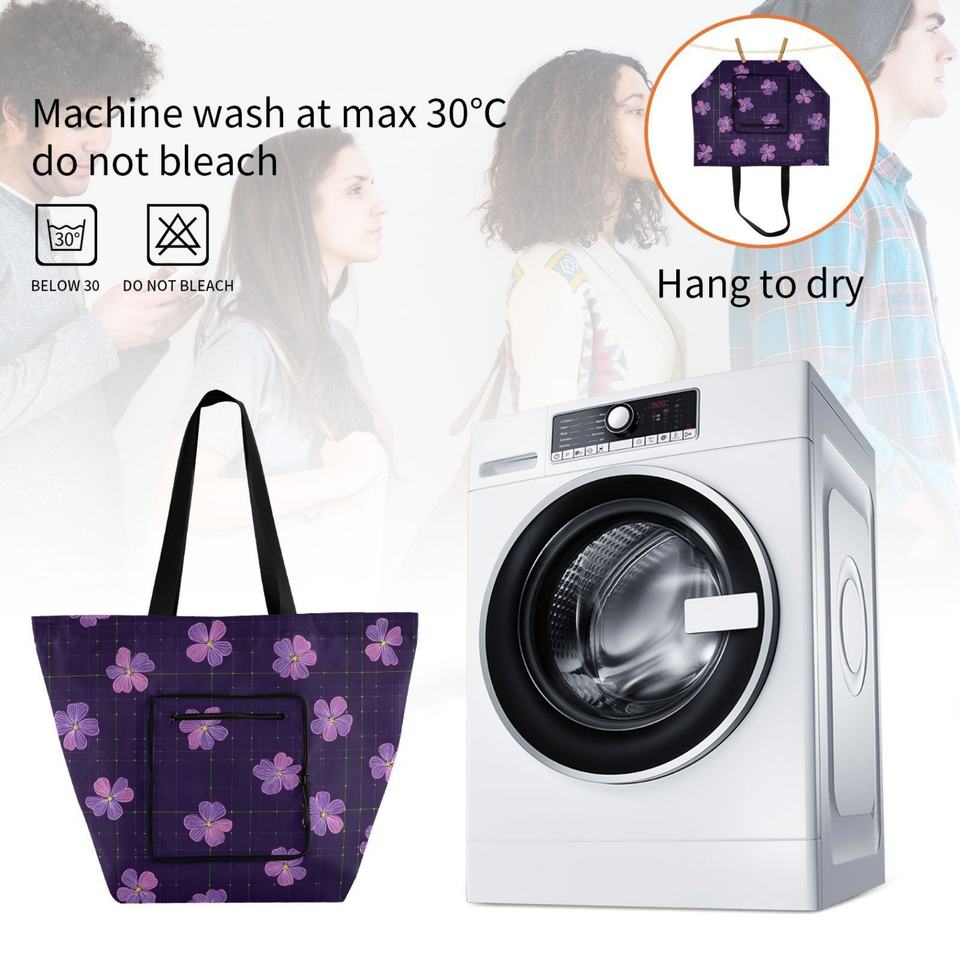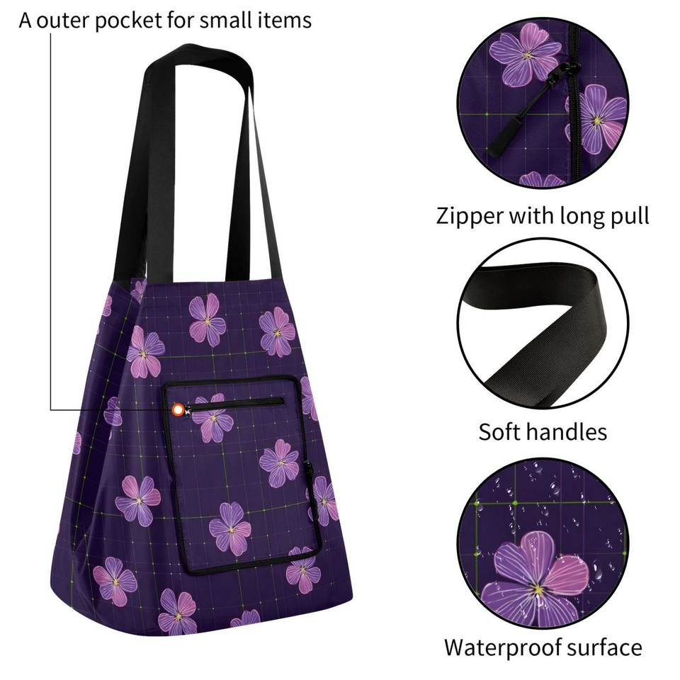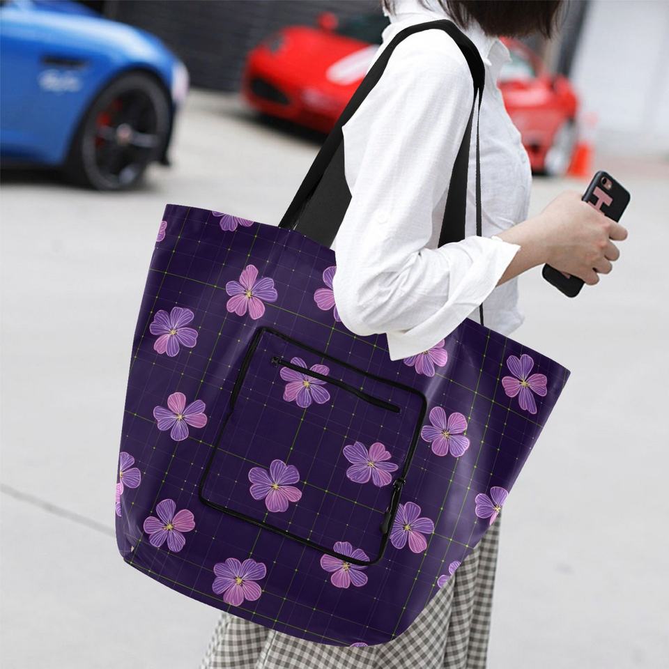 Reusable Polyester Boutique Market Custom Design Eco-friendly Foldable Shopping Tote Bag Flower Grocery Shoulder Shopping Bags
