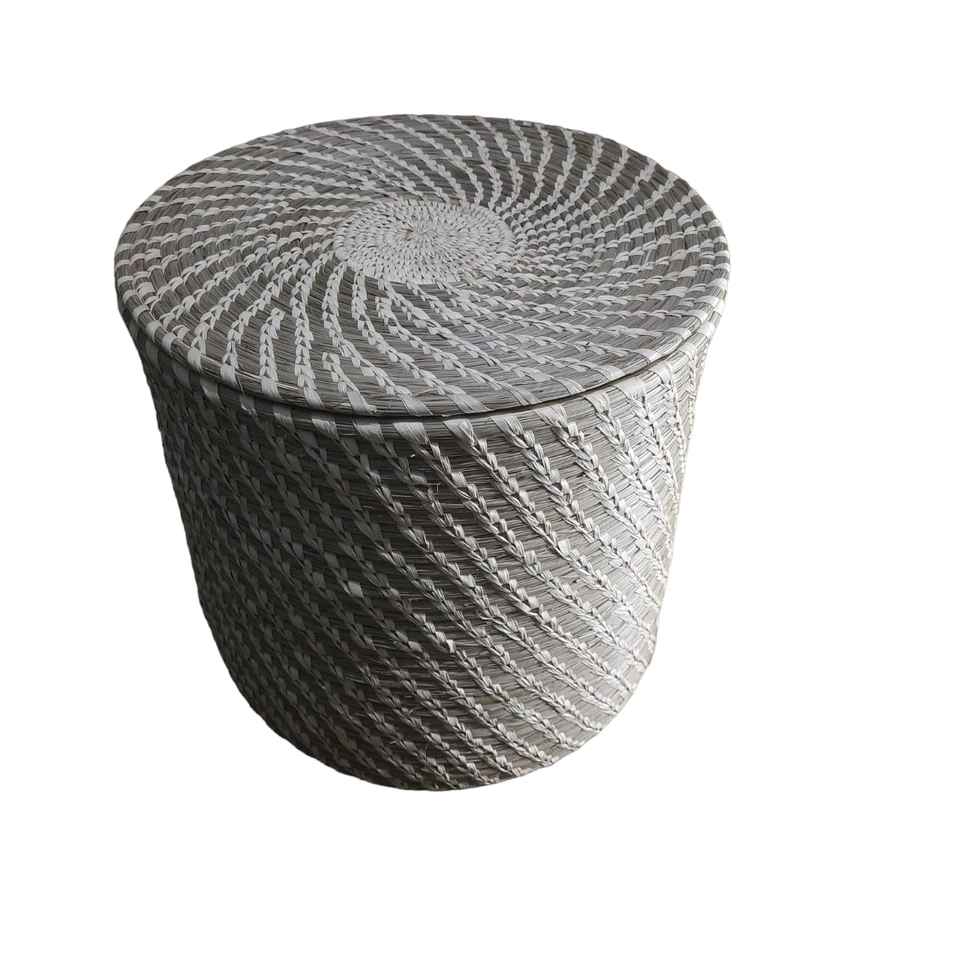 Reusable Portable Wicker Sabai Grass Round Dirty Clothes Toy Storage Organizer Laundry Basket Hamper for Kids Room