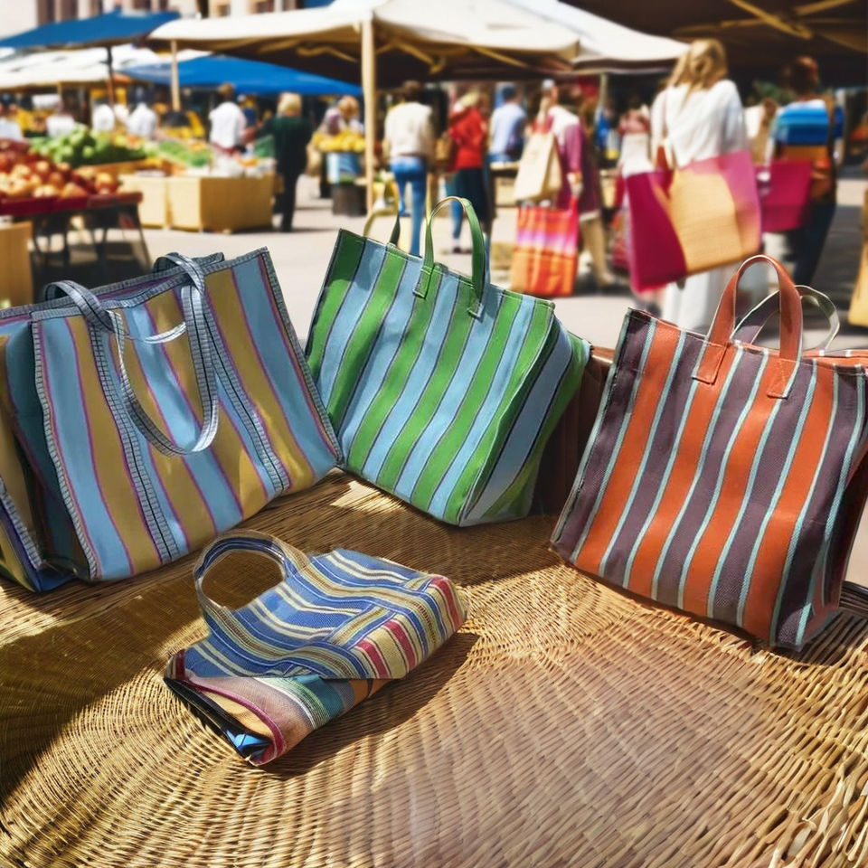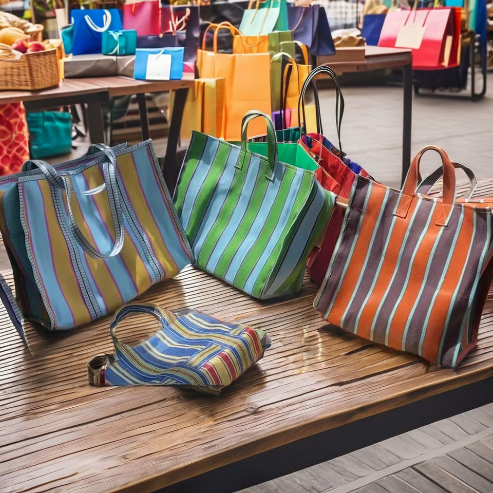 Reusable Striped PP Woven Shopping Bags Sustainable Recycled Eco-Friendly Large Bulk Options Made in India