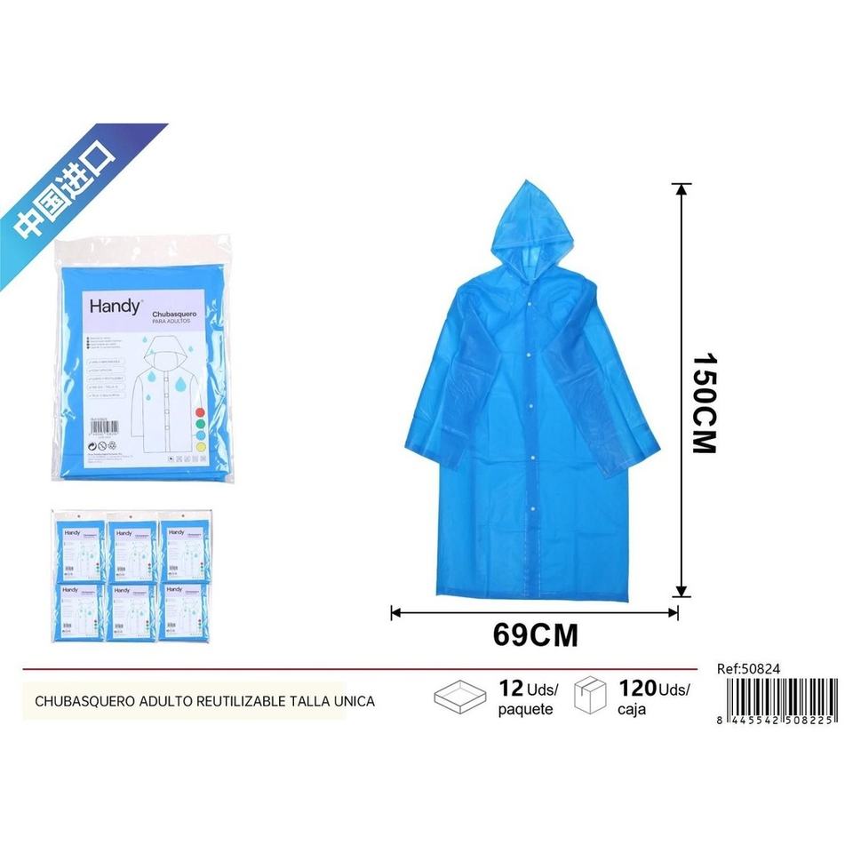 Reusable adult raincoat, one size fits all, for rain protection