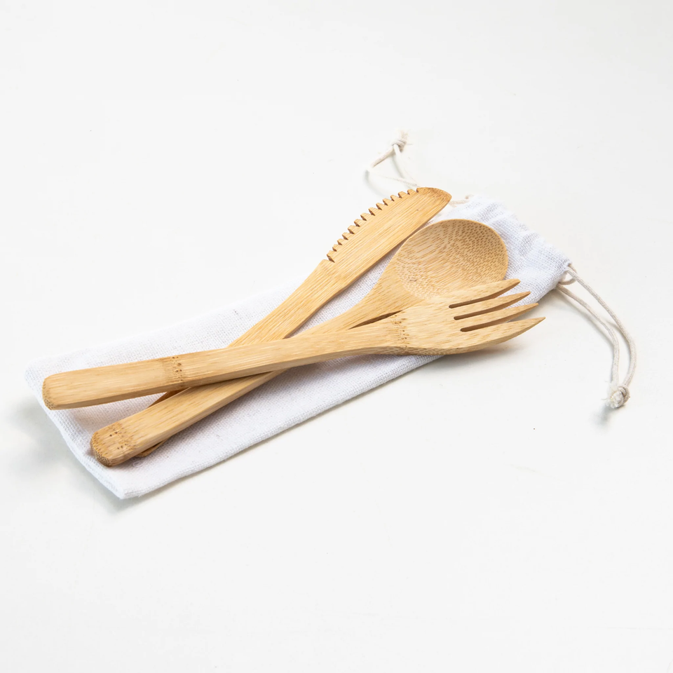 Reusable bamboo travel cutlery kit highest quality natural utensil spoon fork knife set for camping & traveling