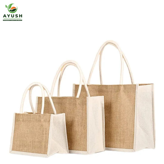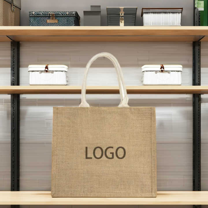 Reusable logo printed shopping bags made of jute fabric with customizable logo & size eco friendly shop bags