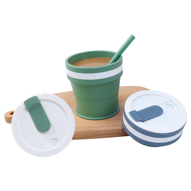 Reusable to-go Pocket Size Silicon Cups | Eco-Friendly & Lightweight Silicone Foldable Collapsible Travel Cup with Lid and Straw
