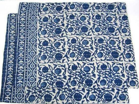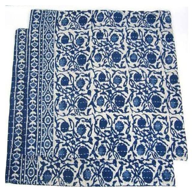 Reversible Bedding Hand Block Print Indian Kantha Quilt 100% Cotton Katha Thread Work 90x108inch Indian Manufacturer Price