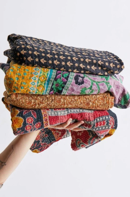 Reversible Hippie Kantha Quilt Hand Stitched Cotton Vintage Bedspread Soft Bohemian Blanket Queen Size Bedding Set