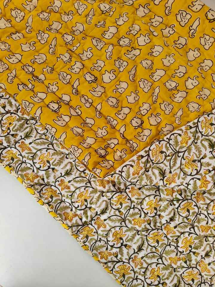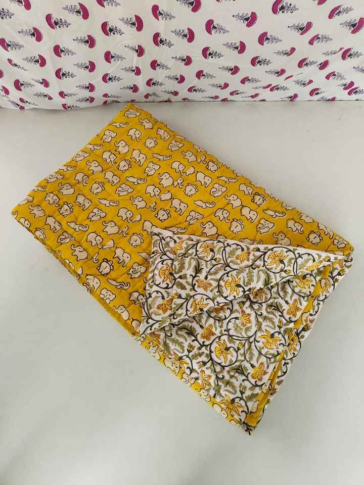 Reversible Kantha Animal Block Print Razai Quilt Handmade Jaipuri Bedspread