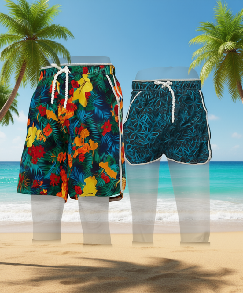 Reversible Men's Floral Board Shorts With Pockets Drawstring Waist 100% Polyester Woven Swimwear Casual Style