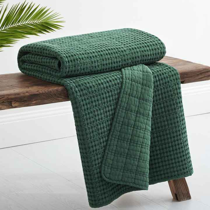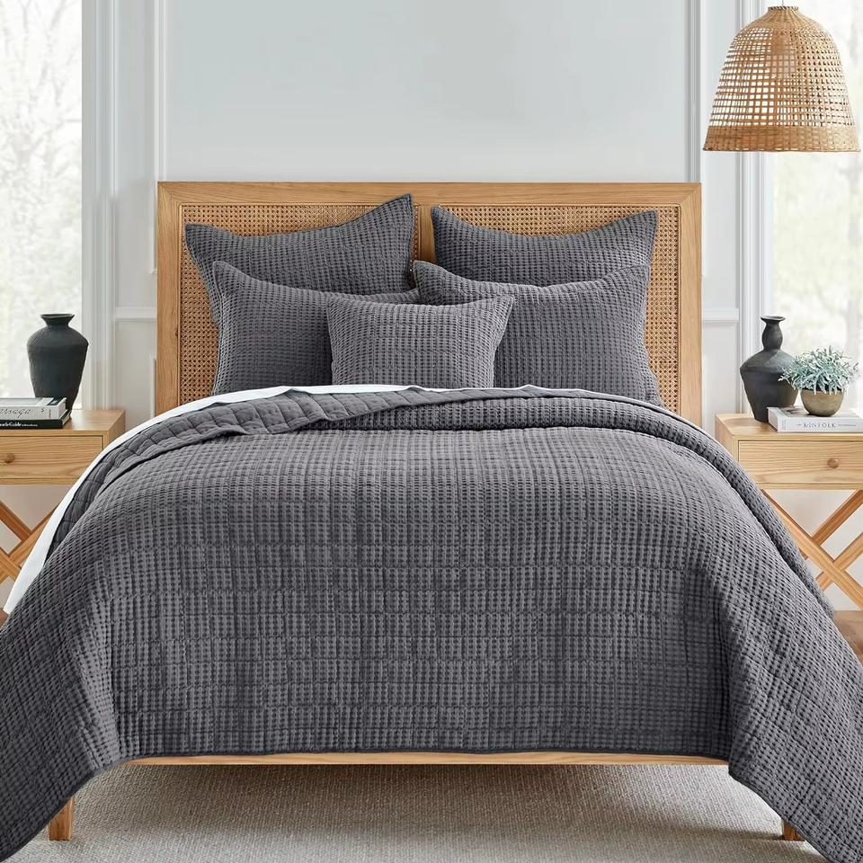 Reversible Organic Queen-Size Cotton-Filled Waffle Quilt Set Soft Breathable Summer Comforter Solid Pattern Nicely Dropped Hotel