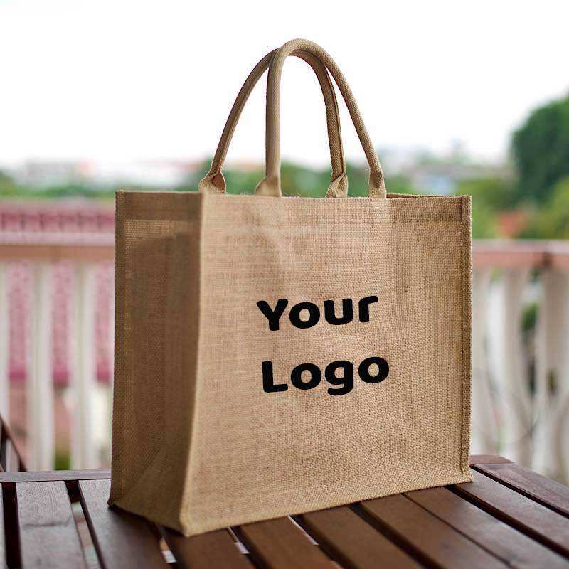 Reversible Personalized Jute Handbag Environmentally Friendly Tote Bag Chains Two Straps Available Natural Black Color