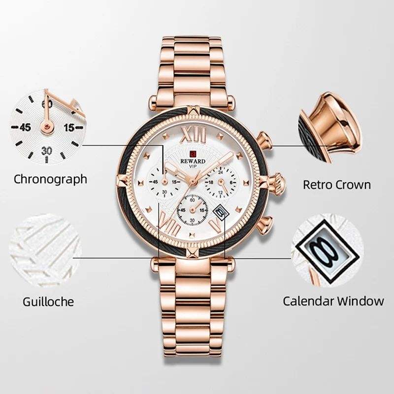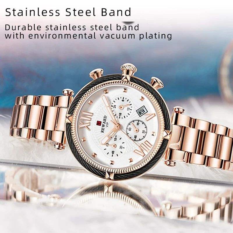 Reward 63084L Luxury Steel Strip Quartz Women's Watch Multi Functional Night Light Waterproof Calendar Watch Women Reloj Mujer
