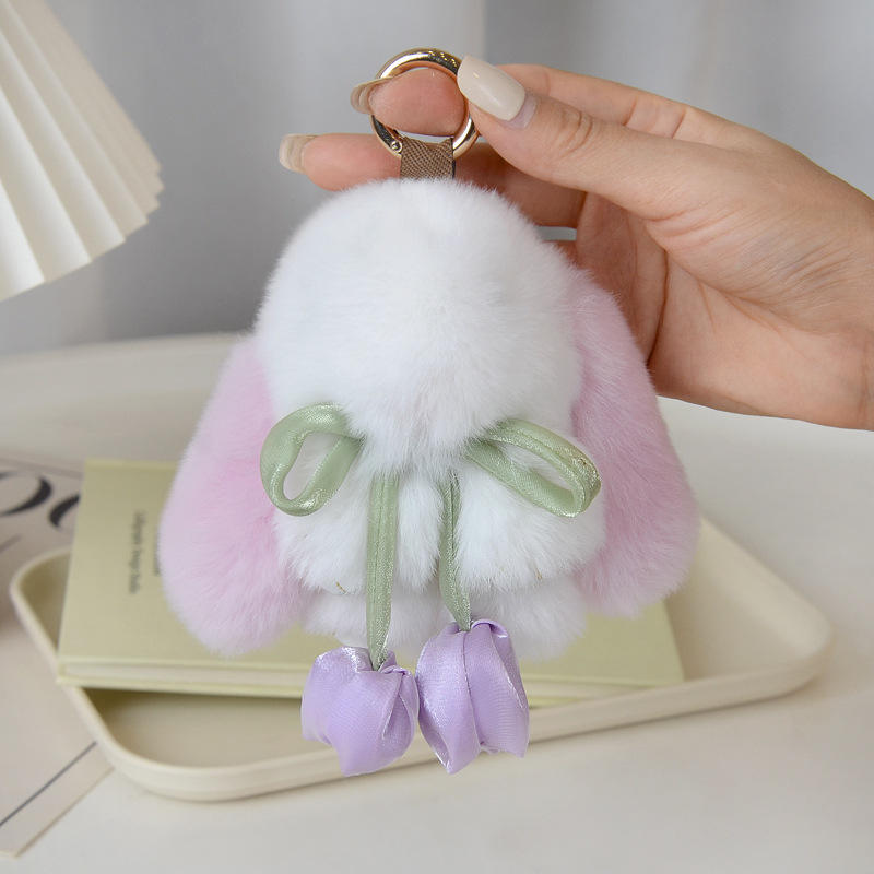 Rex Rabbit Fur Keychain Tassel Dolls Cute Bunny Pendant Fluffy