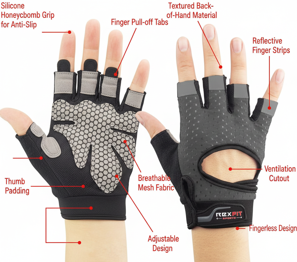 RexFit Sport Unisex Gym Fitness Gloves Anti Slip | High Quality Leather Workout Weight Lifting Gloves