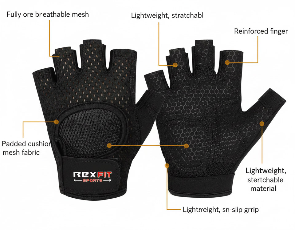 Rexfit Sports Gym Gloves for Men Full Palm Silicone Grip Workout Gloves Breathable Weight Lifting & Fitness Training Gloves