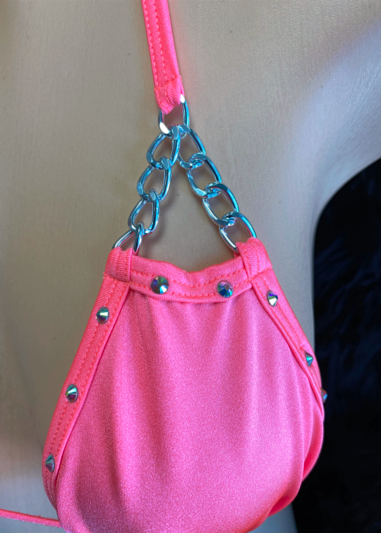 Rhinestone and Chain Thong Bra Set Women Two Piece Sexy Clubwear