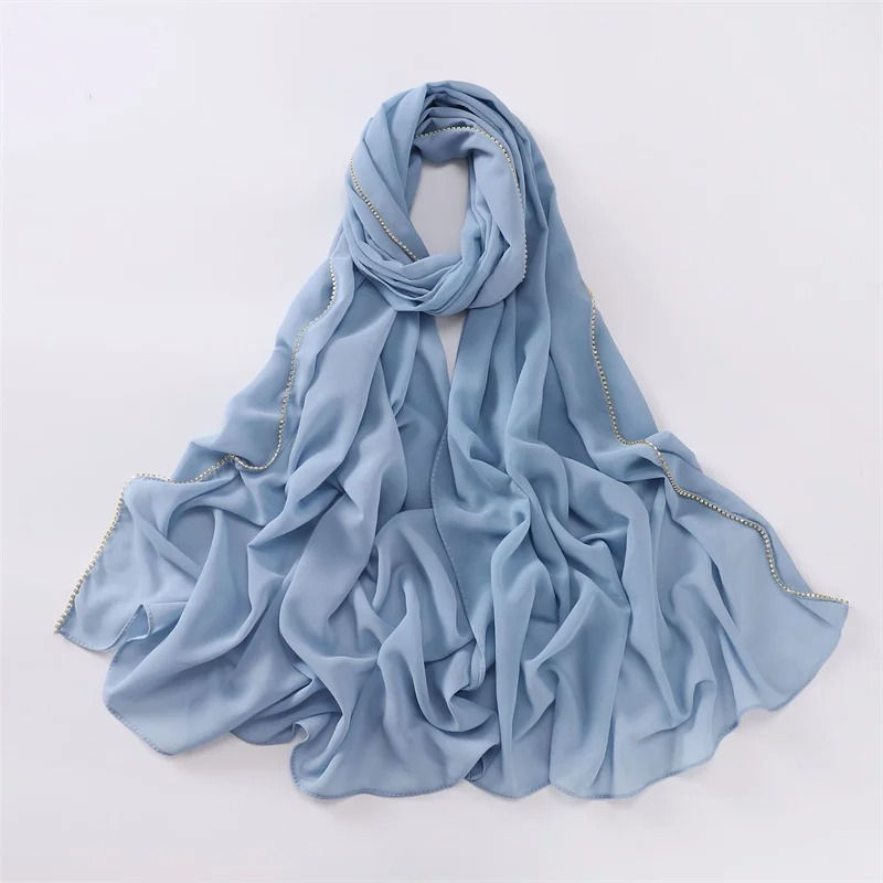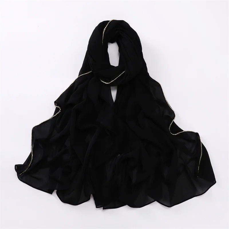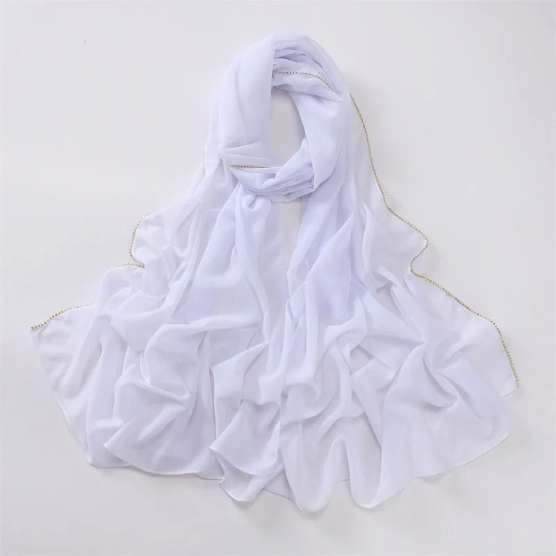 Rhinestone Chiffon Hijab Ramadan Long Scarf Necklace Chain Shawl Women Sunscreen Headscarf Outdoor Windproof Head Wrap 2025