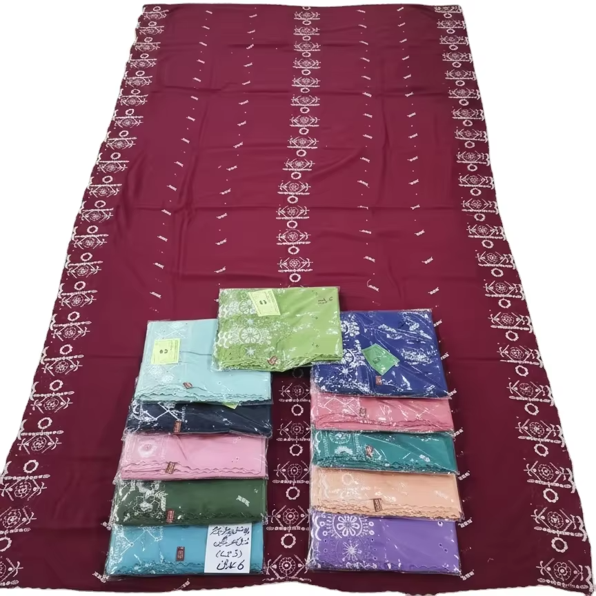 Rhinestone Embroidery Floral Scarf Dubai Style 2.2m Islamic Hijab Women African Wholesale Polyester Cotton Summer Daily Wear