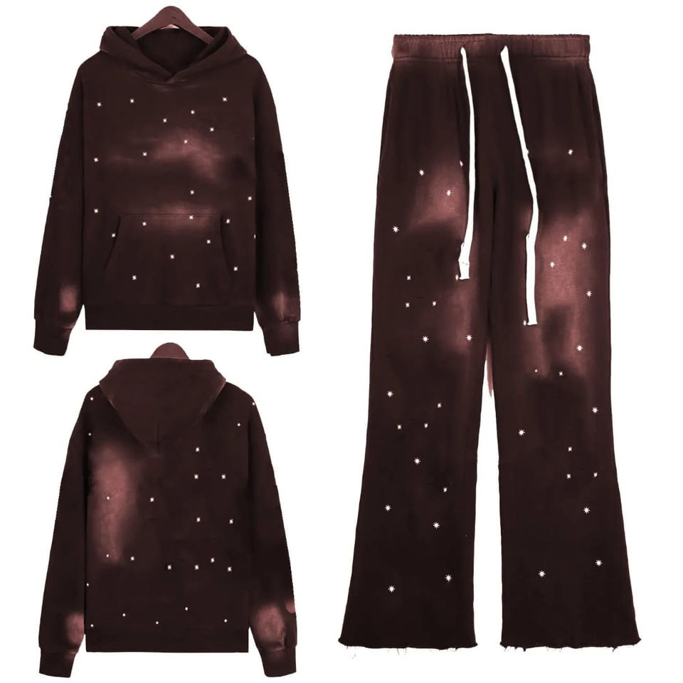 Rhinestone Flare Sweatpants and Hoodie Set OEM Custom Manufacturer Double Waisted Baggy Stacked Pants Sweat Suit Zip up