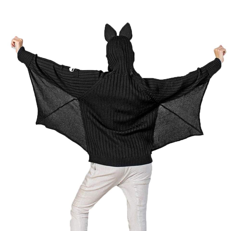 Infant's 12-18 Months Halloween Costume Black Bat Orange Wings Full Zip Rhinestone Hoodie Winter Pullover for Little Bat Winged