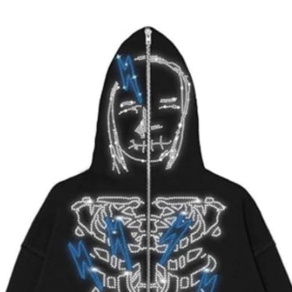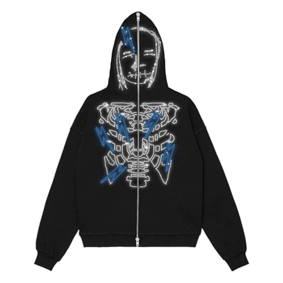Rhinestone Hoodie For Men Fashion Glitter Zipper Rhinestone Hoodie Oversized Bling Aesthetic Sweatshirt Sparkly