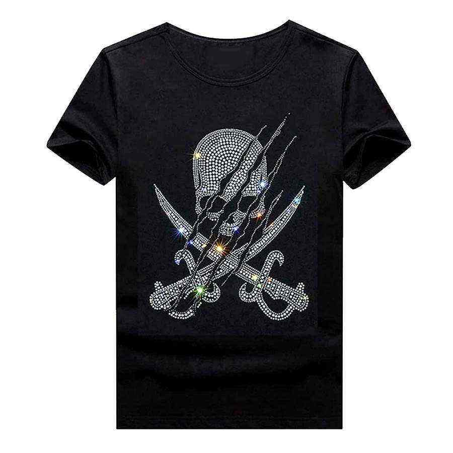 Rhinestone Mens Customizable T Shirts Cotton/Polyester Options High Quality & Quick Dry Wholesale Rhinestones T Shirts