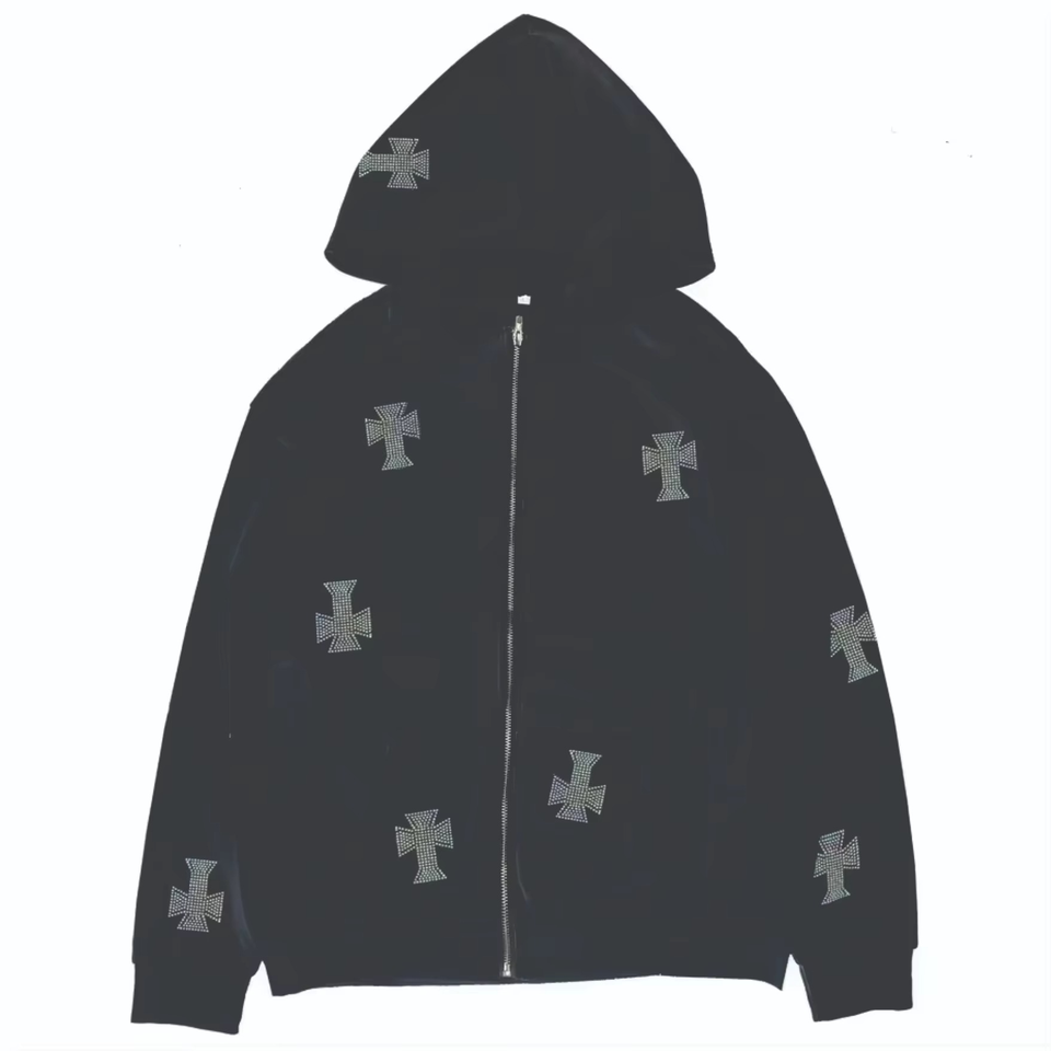 Rhinestone Sweatsuits Unisex Loose Fit Hoodie & Flare Bottom Pants Mens All Over Gem Stones 100% Cotton Thick Tracksuits OEM