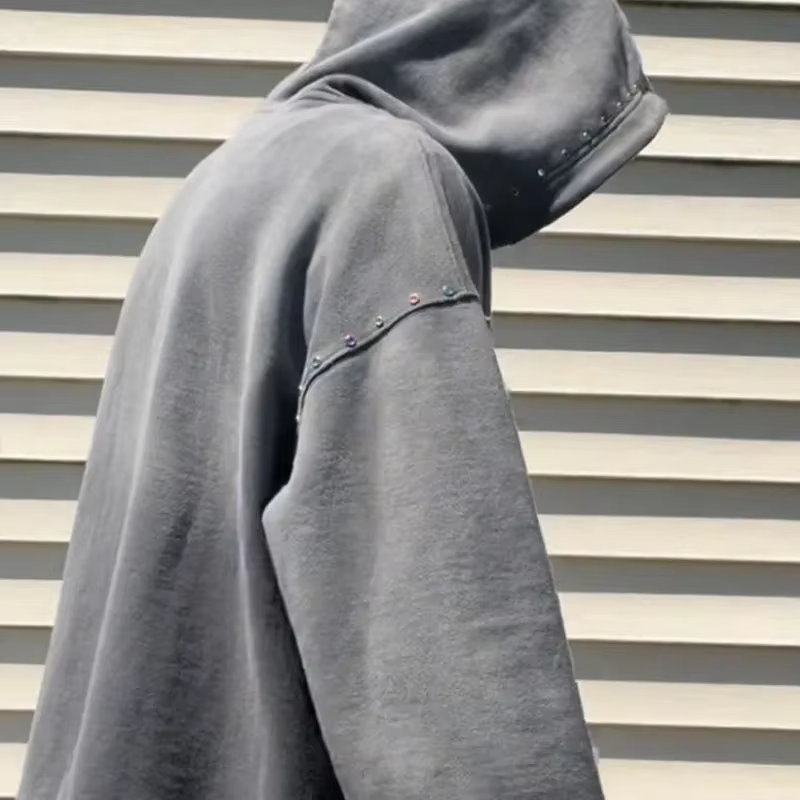 Rhinestone Zipper Over size Heavyweight Screen Print Hoodies 100% Cotton Sweatshirt Custom Street wear Rhinestone Zip Hoodie